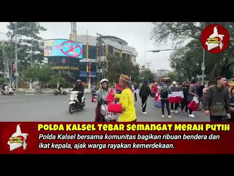 Polda Kalsel bersama komunitas bagikan ribuan bendera dan ikat kepala, ajak warga rayakan kemerdekaan
