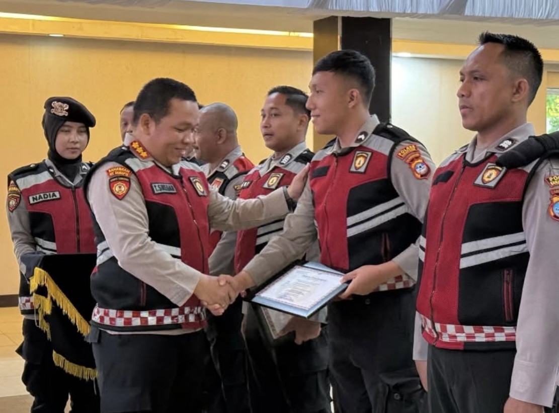 Direktur Samapta Polda Kalsel Kombes Pol. Timbul R.K Siregar, S.I.K., M.Si menyerahkan langsung Piagam Penghargaan kepada 12 orang personil Sat Samapta Polres Jajaran di Polda Kalsel yang 4 (empat) orang di antaranya adalah personil dari Sat Samapta Polres Banjarbaru.